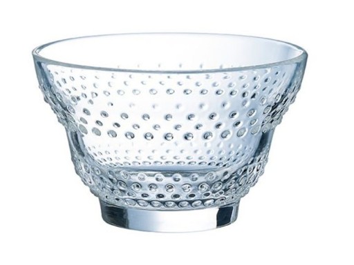 Efektownie zdobiony pucharek deserowy Arcoroc. Duża przejrzystość szkła i ciekawe zdobienie w postaci wypukłych kropek apetycznie wyeksponuje serwowane desery. Pucharek ze szkła hartowanego - wyjątkowo trwały i odporny na uszkodzenia.