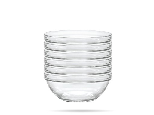 Szklana salaterka na sałatki i przekąski. Szklane miseczki sprawdzą się w każdej kuchni. Sztaplowane salaterki można łatwo i bezpiecznie ułożyć w stosy.