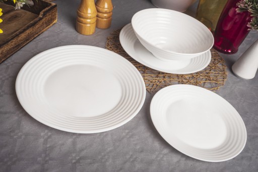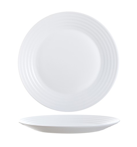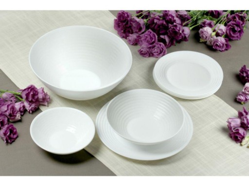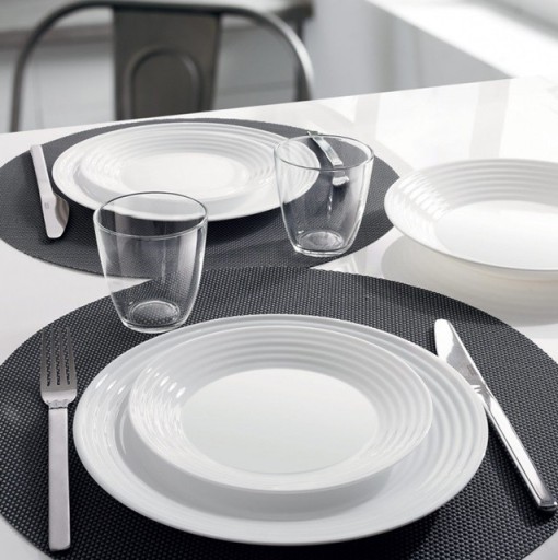 Harena Luminarc to seria naczyń z ciekawym, prążkowanym zdobieniem na obrzeżach. Taki design nadaje świeżości i lekkości serwowanym daniom. Naczynia wykonane ze szkła hartowanego typu opal są mniej podatne na obtłuczenia, zarysowania czy szoki termiczne. Są przy tym lekkie i wygodne w użyciu.