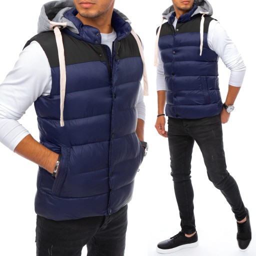KAMIZELKA MĘSKA PIKOWANA BEZRĘKAWNIK Z KAPTUREM