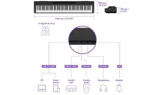 Ponadto, dzięki opcjonalnej miękkiej torbie, P-145 może towarzyszyć Ci wszędzie, gdzie tylko zechcesz: do studia, na imprezę, na koncerty na żywo, a nawet w podróż. Gdziekolwiek zechcesz odkrywać swoją pasję do muzyki, Yamaha P-145 jest zawsze gotowa, aby Ci towarzyszyć. Ta przenośność otwiera zupełnie nowe możliwości dla pianistów, dając im swobodę wyrażania siebie przez muzykę, niezależnie od miejsca i czasu.