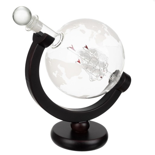 - karafkę do whisky globus ze statkiem w środku oraz wygrawerowaną mapą świata o pojemności 850 ml