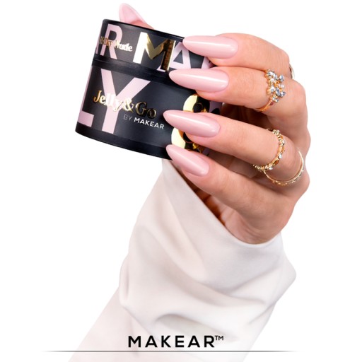JELLY&GO to żel typu galaretka, który zapewnia dodatkowy czas na perfekcyjne wykończenie stylizacji, umożliwiając jednoczesne modelowanie kilku paznokci lub tworzenie awangardowych kształtów.