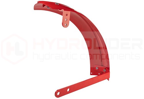 Metalowy błotnik z powłoką lakierowaną przeznaczony do montażu na kołach przednich 6.00-16 w ciągnikach Ursus C-330, C-360 oraz C-360-3P. W zależności od strony przykręcenia wsporników mocujących może być użyty jako lewy lub prawy.