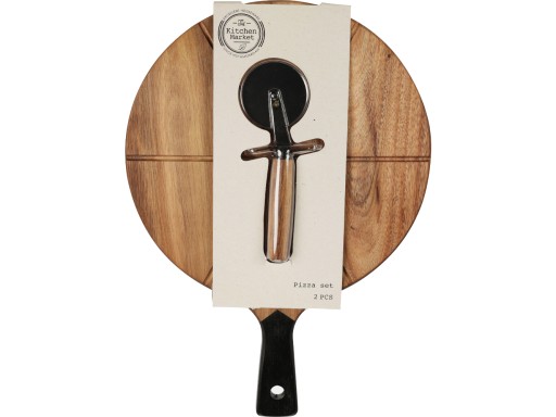 - Deska + okrągły nóż przeznaczone do porcjowania i serwowania pizzy