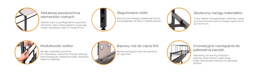 Modułowa konstrukcja stołu, dostosowana do indywidualnych potrzeb, gwarantuje wygodę i komfort podczas każdej operacji pakowania. Praca staje się przyjemnością, a ergonomiczne rozwiązania sprawiają, że każdy gest jest dobrze przemyślany.