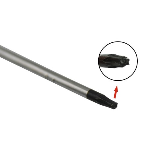 Śrubokręt torx T8 wraz z otworem zabezpieczającym.