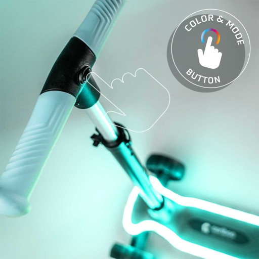 ✅ Wystarczy wcisnąć przycisk a kolorowe światełka popłyną jedno za drugim, zgrabienie się przeplotą lub będą rytmicznie pulsować. Hulajnoga LEDstar posiada aż 13 wielobarwnych kombinacji do wyboru, w tym hipnotyzujący tryb rainbow, w którym kolory tęczy płynnie przechodzą jeden w drugi, tworząc niepowtarzalne widowisko.