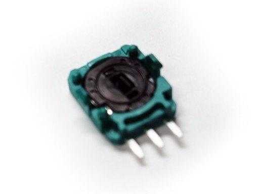 Jak wspomniałem powyżej, analog to 2 potencjometry (kolorowy element z 3 nóżkami, można go odłączyć od obudowy) o rezystancji całkowitej 10kOhm i tolerancji 20%. Oznacza to, że w praktyce mają 9-11kOhm. Oba potencjometry działają jako dzielniki napięciowe. Jeśli po wymianie występuje odchylenie oznacza to, że został zamontowany analog o innych parametrach. Idealnym rozwiązaniem byłoby ponowne skalibrowanie pada, tak jak kalibruje się nowe analogi w JoyCon'ach Nintendo Switch. W związku z tym najprostszym rozwiązaniem jest lutowanie potencjometrów (tych z 3 nóżkami) do skutku, albo zmierzenie starego potencjometru i dobór możliwie jak najbardziej zbliżonego. Wszystkie analogi wysyłamy losowo, nie mierzymy potencjometrów przed wysyłką!