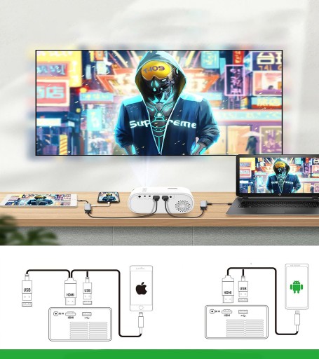 Do projektora możesz podłączyć urządzenie z dowolnym systemem operacyjnym jak Windows, Apple IOS, Mac OS, Linux, Android itd.