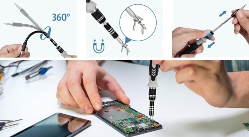 Nasz zestaw narzędzi wielofunkcyjnych z różnorodnymi bitami i narzędziami, doskonale sprawdza się nie tylko w dziedzinie elektroniki, ale również podczas prac w innych obszarach.