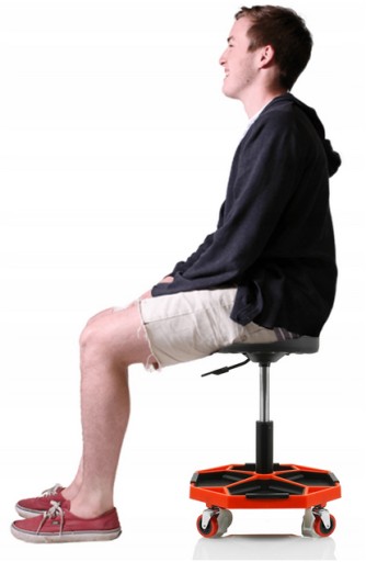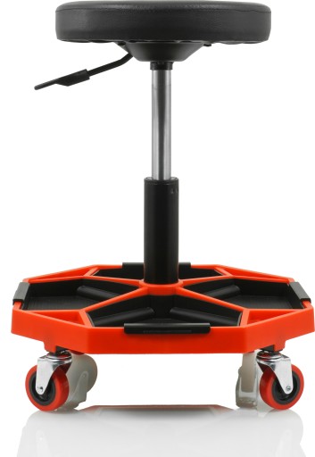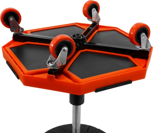 Nie musisz nawet wstawać ze stołka, by przesunąć się w wybrany punkt warsztatu. Stołek wyposażony jest w 4 obrotowe kółek (360°).