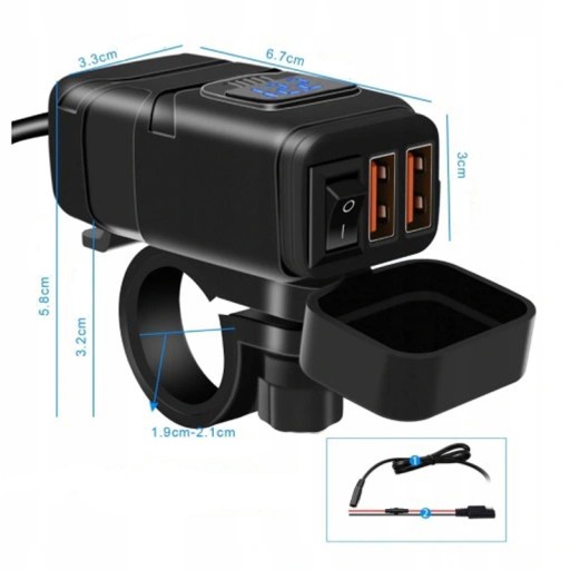 Ładowarka motocyklowa 2x QC3.0 WOLTOMIERZ PRZYCISK: