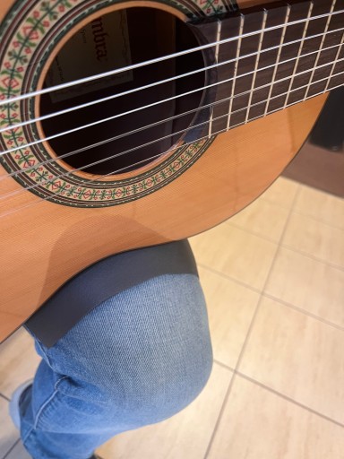 Ułatwia utrzymanie prawidłowo gitary. Nie powoduje zsuwanie się gitary z kolana.