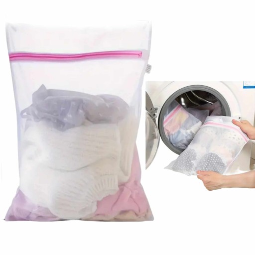 Siatka została wyposażona w zamek błyskawiczny, aby ubrania nie wypadły podczas prania. Woreczek posiada duże oczka, gwarantujące swobodny przepływ wody.