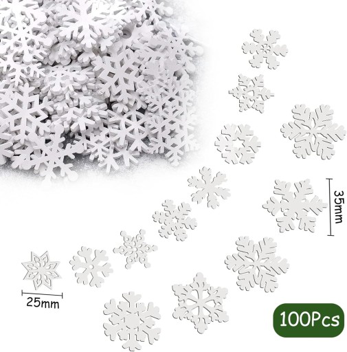 100 sztuk dekoracji stołu w kształcie płatków śniegu z drewna.
