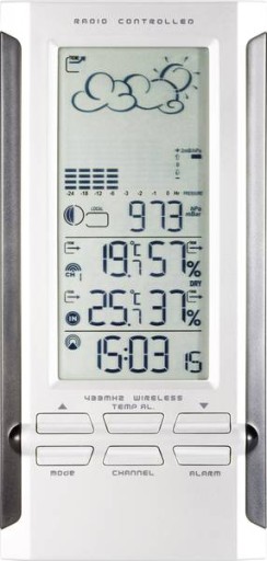 - Funkcjonalność: Temperatura pokojowa, Wilgotność w pomieszczeniu, Zegar radiowy (DCF77), Temperatura zewnętrzna, Wilgotność na zewnątrz, Ciśnienie Powietrza, Maks. 3 czujniki, Dzień tygodnia, Prognoza pogody, Wskaźnik tendencji pogody, Data, Stan baterii / akumulatora, Wartości MAX / MIN, Faza księżyca, Wskaźnik komfortu