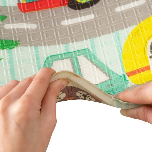 Złożona mata to także wygoda przechowywania. Mata nie zajmuje dużo miejsca więc można ją łatwo przechowywać pod łóżeczkiem lub w pozycji pionowej pomiędzy meblami.