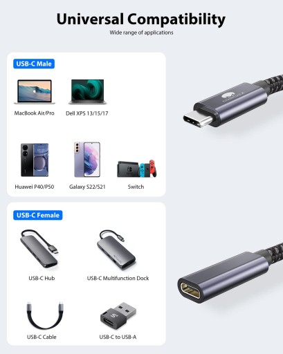 - 【Wyjście wideo 4K HD】Kompatybilny z kablem DP Alt Mode, ciesz się 4K @ 60Hz HD z rozdzielczościami 3840*2160, popraw wrażenia z rozrywki.