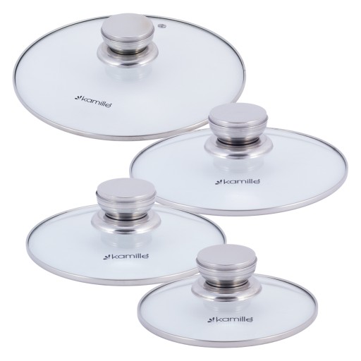 - pokrywki wykonane ze szkła żaroodpornego z odpowietrznikiem i stalową obręczą