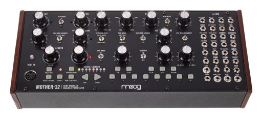 Z półmodułowym syntezatorem, ścieżka sygnałowa pod maską jest "wstępnie okablowana", więc można tworzyć muzykę elektroniczną z syntezatorem Moog Mother-32 nawet bez kabli patchowych. Jak tylko chcesz iść nieco głębiej, w grę wchodzą 32 złącza. Liczne możliwości modulacji Mother-32 można połączyć z innymi modułami syntezatora dzięki licznym punktom patchowym. Rezultatem tego są niezliczone możliwości wzajemnej modulacji i kontroli, które otwierają zupełnie nowe sposoby gry syntezatorów. Jest to otwarta koncepcja aplikacji, która pozwala Moog Mother-32 być używane niezależnie lub zintegrowane w modułowej konfiguracji syntezatora.