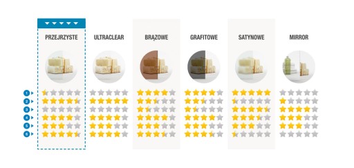 Tabela porównawcza właściwości użytkowych dostępnych wariantów szkła