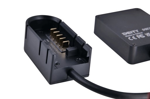 Ładowarka jest wyposażona w 5-pinowe inteligentne złącze akumulatora typu blade z jednej strony i metalową obudowę z drugiej, w której znajduje się wbudowany obwód ładowarki, port USB-C.