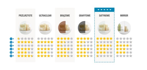 Tabela porównawcza właściwości użytkowych dostępnych wariantów szkła