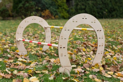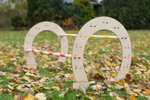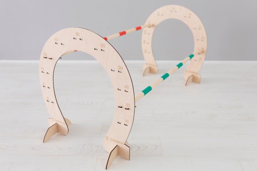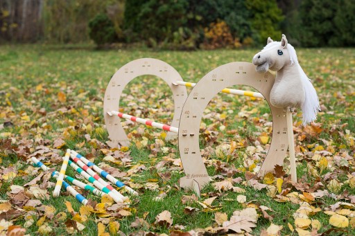 Przeszkoda hobby horse z drągami wykonana ze sklejki plus akcesoria.