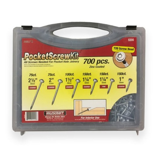 PocketScrew Kit Milescraft zestaw 700 szt. wkrętów do połączeń kieszeniowych (pocket hole) (torx T20) w walizce.