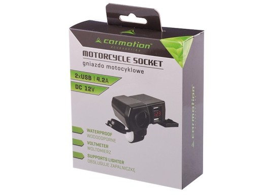 Ładowarka motocyklowa 2x USB 4.2A z woltomierzem i gniazdem zapalniczki EURO