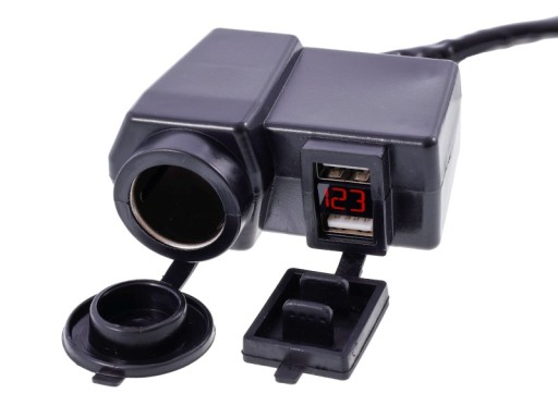 Wodoszczelne gniazdo zapalniczki z podwójnym USB oraz cyfrowym woltomierzem.