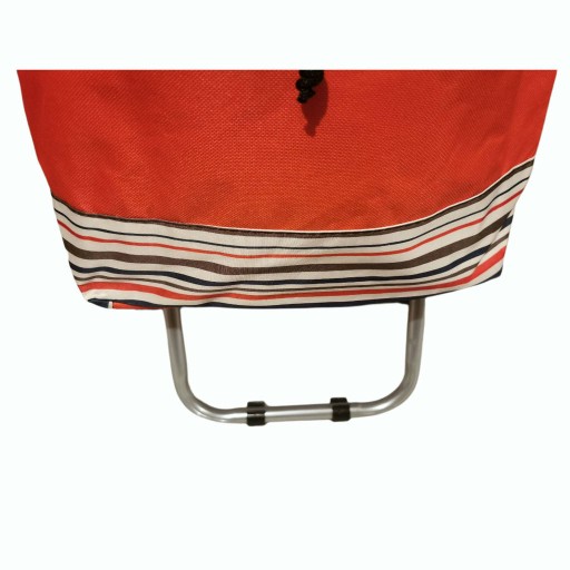 Duża i ergonomiczna - pozwala na stabilny uchwyt i przyjemne prowadzenie wózka. Manewrowanie wózkiem nawet w wąskich pomieszczeniach nie będzie trudne. Ściągacz z zatrzaskiem zapewnia stabilne ułożenie produktów w torbie.