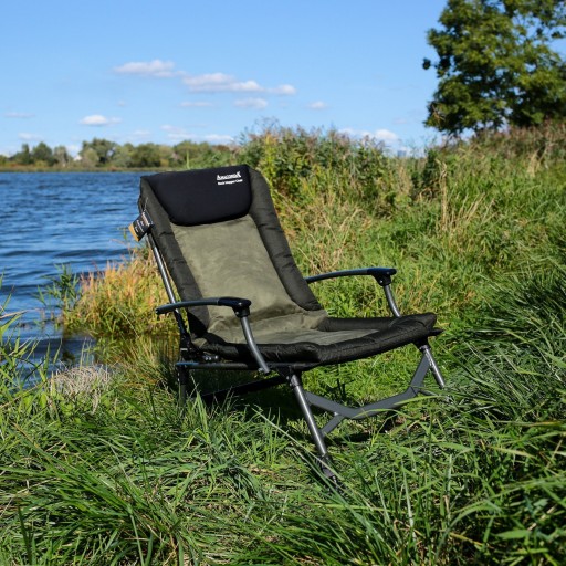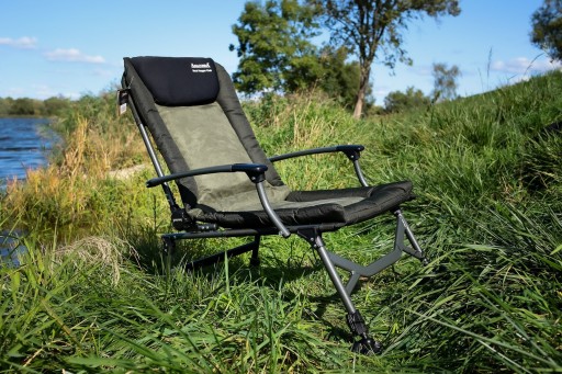 Także z uwagi na ekstra mocną wyściółkę, zwłaszcza w zagłówku w i okolicy nerek, podłokietniki i ekstra długie oparcie, to krzesło to mus dla każdego pasjonata wędkarstwa karpiowego.