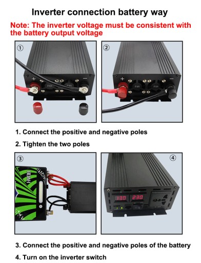 Falownik 12V może łączyć tylko baterię 12V (normalny zakres roboczy wynosi od 9V do 15.5V),