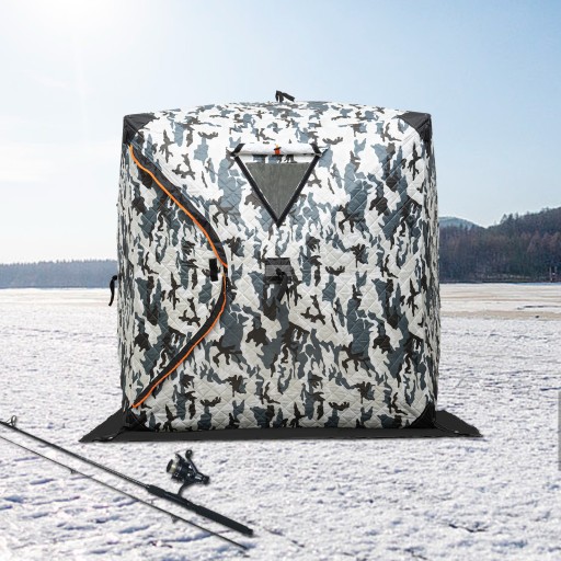 Ten zewnętrzny namiot wędkarstwa lodowego jest idealnym towarzyszem podczas wędkarstwa na lodzie! Wykonany jest z litych prętów z włókna szklanego i tkaniny 210D Oxford z trzema warstwami izolacji bawełnianej, aby utrzymać ciepło i bezpieczeństwo w zimnej pogodzie. Jego duży rozmiar może pomieścić Ciebie i Twoich przyjaciół wędkarskich, zapewniając Ci ciepłe i komfortowe środowisko łowienia lodowego. Jest również wyposażony w drzwi i dwa okna, dzięki czemu można w każdej chwili obserwować szkoły ryb na lodzie i poprawić wskaźnik sukcesu połowów.