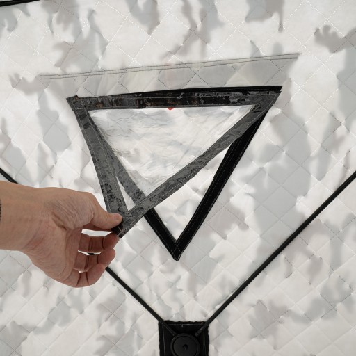 - Przemyślany design: Dzięki drzwiom w kształcie litery D i podwójnemu zamkowi błyskawicznemu otwieranie i zamykanie namiotu jest łatwe. Dwa okna z taśmą klejącą i rolowaną osłoną można łatwo otworzyć i zamykać, co pozwala cieszyć się doskonałym światłem podczas wędkowania w namiocie. Wzmocnione i zagęszczone narożniki sprawiają, że jest on bardziej trwały i zapewniają długą żywotność.