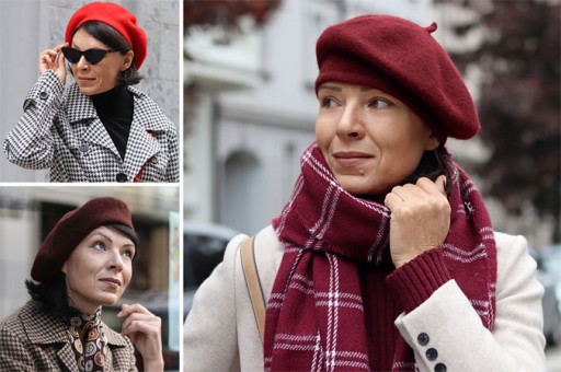 Damski beret w stylu francuskim to nowoczesny i elegancki dodatek do jesienno - zimowych stylizacji. Berety są miłe, ciepłe w dotyku i niegryzące.