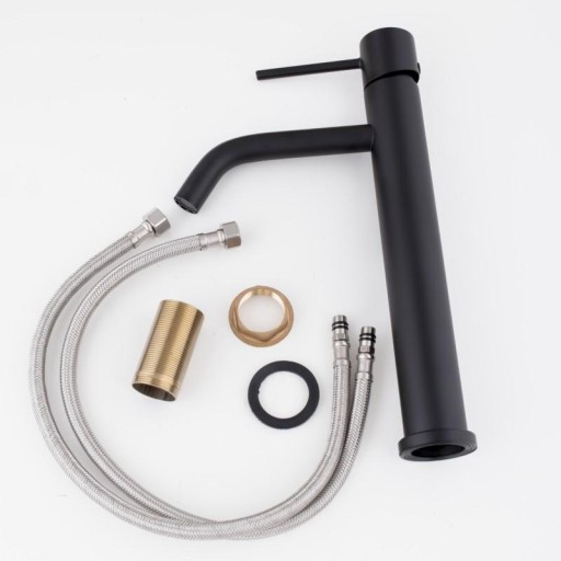Korpus baterii wykonano ze stali nierdzewnej. Zestaw zawiera 2 wysokiej jakości wężyki w oplocie ze stali nierdzewnej o długości 50 cm ze standardowym przyłączem 3/8 cala oraz komplet akcesoriów do montażu baterii.