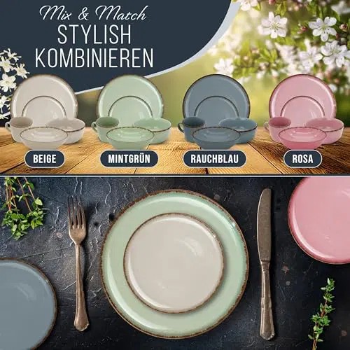 3. RUSTYKALNY UROK: Zestaw naczyń posiada unikalny rustykalny charakter, który dodaje uroku każdemu posiłkowi. Jego delikatne zdobienia i naturalne kolory sprawiają, że stół nabiera wyjątkowego charakteru. Niezależnie od tego, czy organizujesz rodzinny obiad, czy romantyczną kolację, ten zestaw naczyń z pewnością zachwyci Twoich gości.