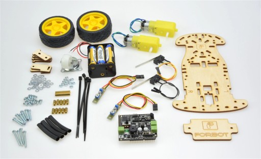 Zestaw do budowy robota, to komplet elementów mechanicznych oraz elektronicznych, które potrzebne są do złożenia konstrukcji opisanych w kursie opublikowanym w serwisie Forbot.pl.