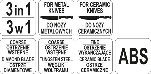 Wielofunkcyjna ostrzałka do noży stalowych i ceramicznych.Posiada 3 ostrza: