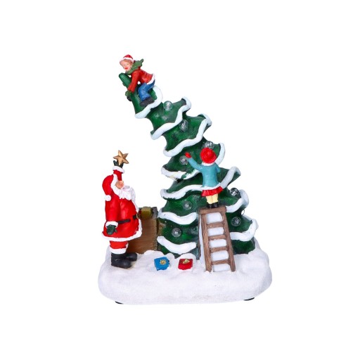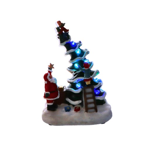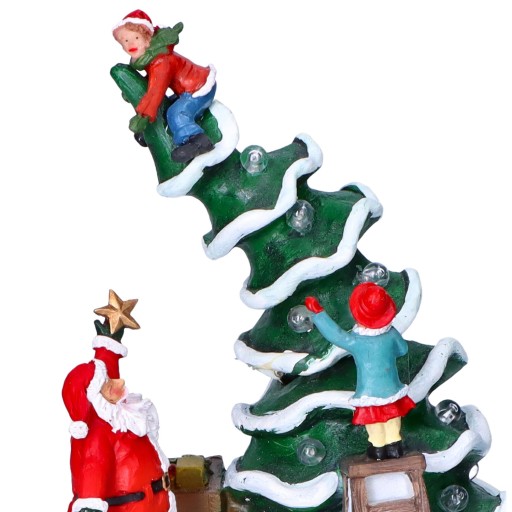 Bożonarodzeniowa figurka zdobiona oświetleniem led w multikolorze. Po uruchomieniu figurki choinka porusza się, sprawiając wrażenie jakby się zginała. Jest to efektowna dekoracja, która wprowadzi do pomieszczenia świąteczny klimat. Figurka jest solidnie wykonana z trwałego materiału, dzięki czemu będzie długo cieszyć oko. Doskonale sprawdzi się jako prezent dla bliskiej osoby.