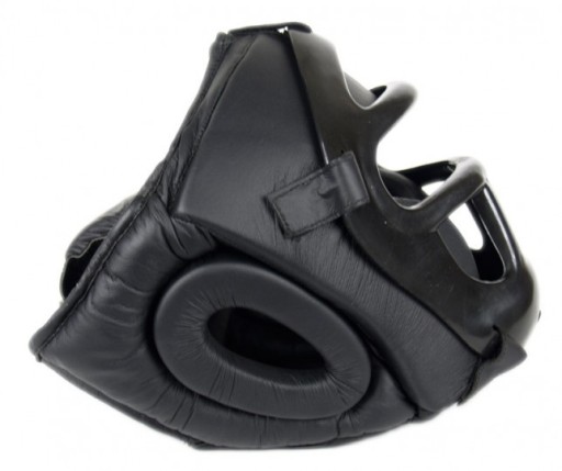 Wykonany ze skóry syntetycznej, maksymalnie zabudowany, chroniący kości szczęki oraz kości policzkowe.
