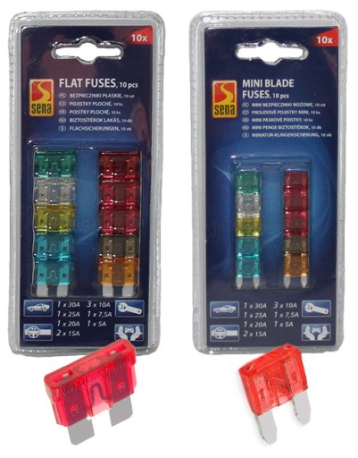- Zestaw bezpieczników mini nożowych zawiera wartości: