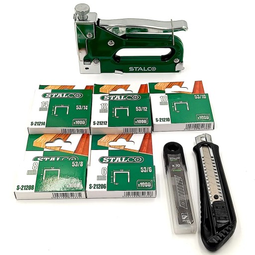 TAKER Stalco ZSZYWACZ MOCNY tapicerski ZESTAW + 5000 zszywek + NÓŻ + OSTRZA