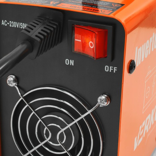 Prostownik inwerterowy VERKE został wyposażony w wentylator zamontowany na tylnej obudowie w celu zapewnienia optymalnej temperatury pracy. Po wyłączeniu prostownika wentylator jeszcze chwilę działa ochładzając układy wewnątrz obudowy.
