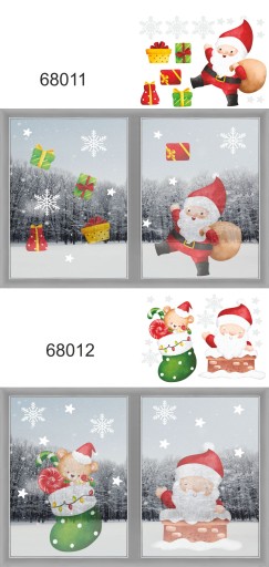 Przedmiotem sprzedaży są zestawy naklejek świątecznych wielokrotnego użytku, umieszczone na arkuszu 30 cm x 100 cm z folii bezbarwnej, po naklejeniu na szybę wydruk jest widoczny również z drugiej strony.