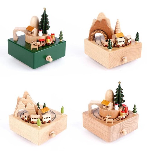 Drewniane klasyczne nakręcane pozytywki Zagraj w melodię na urodziny Wesołych Świąt A