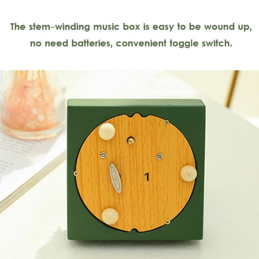 Mechaniczna pozytywka o pięknym designie, wystarczy delikatnie obrócić mechanizm zegarowy w prawo, a następnie zwolnić, muzyka będzie. Nie wymaga baterii.